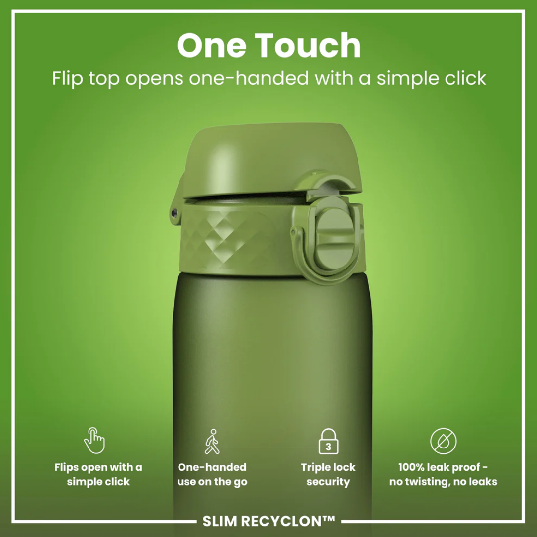 The ION8 Recyclon™ 500ml Water Bottle is a lightweight, 100% leakproof hydration solution designed for everyday use, training, work, and outdoor adventures. Featuring one-touch opening, a full flip-back lid, and triple-lock security, it delivers smooth, spill-free flow with hygienic protection on the move. Made from carbon-neutral Recyclon™ polymer, it’s durable, odour-resistant, and built for responsible reuse.