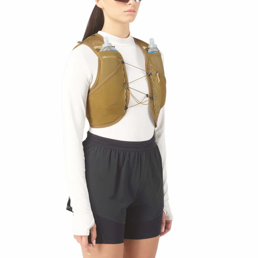The Salomon Active Skin 8 Set is built as the ideal step into longer trail efforts, offering the comfort, security and storage needed for marathon-distance adventures. Lightweight, breathable and ultra-secure, it combines an updated SensiFit™ construction with intuitive hydration access to keep you focused on the trail ahead.